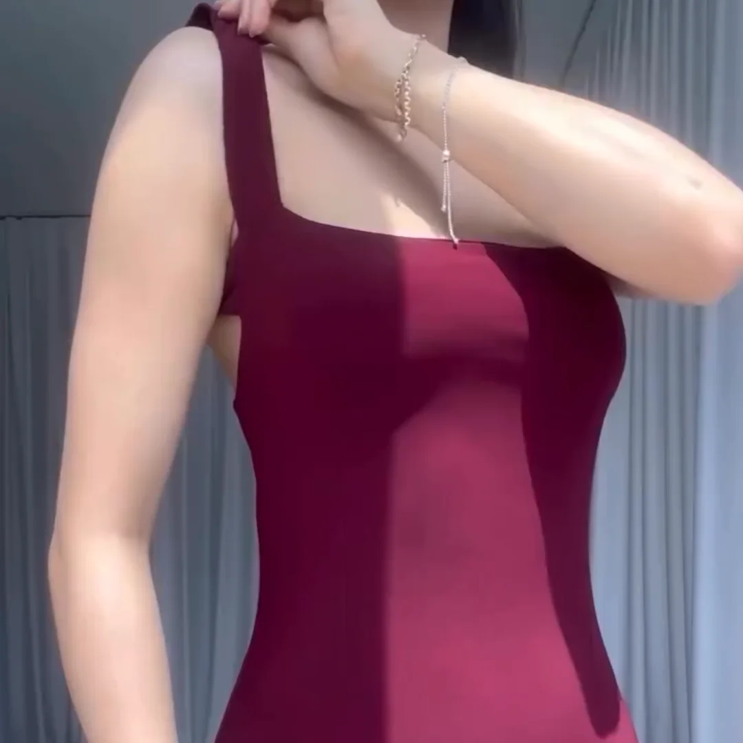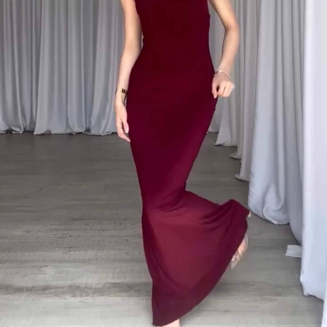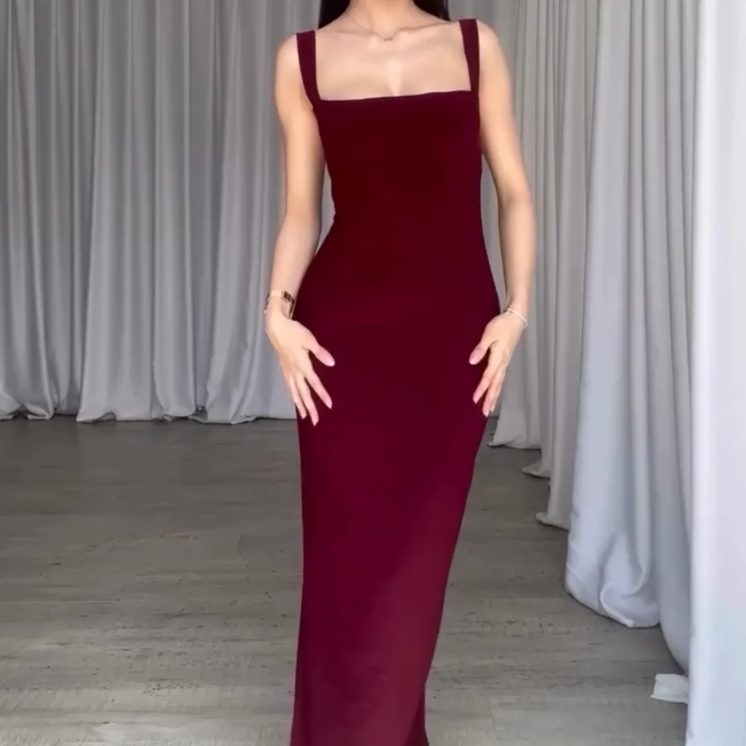 This backless bodycon dress has a stylish half cut at the back. Made from soft cotton spandex fabric, it’s comfortable and stretchy. The free size fits from 40 kg to 70 kg, offering a great fit for different body types. It’s perfect for a bold, fashionable look.