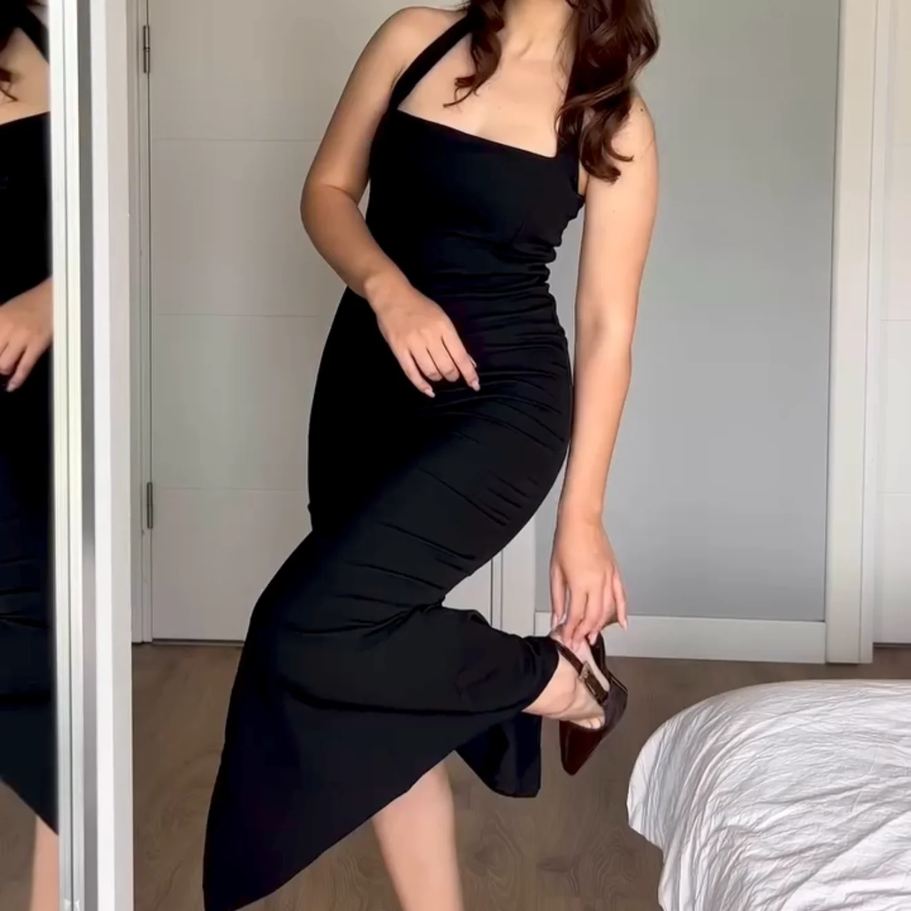 A halter neck dress is a stylish outfit that features a strap that wraps around the back of the neck, leaving the shoulders and upper back exposed. It comes in various styles, lengths, and fabrics, making it suitable for casual, formal, and party wear.