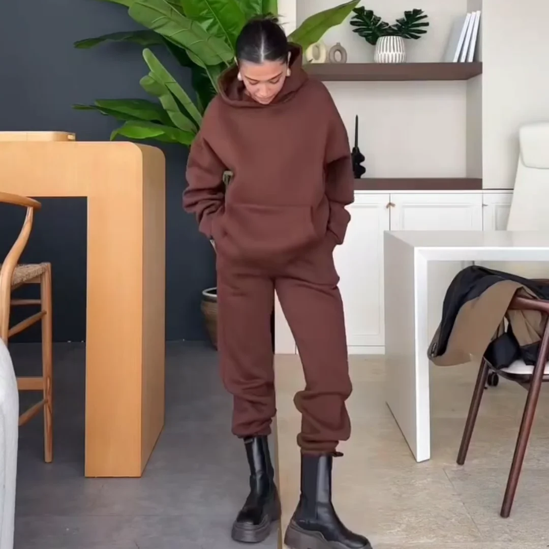 This hoodie and joggers set has soft fur inside to keep you warm and cozy. It’s free size and fits people from 40 kg to 100 kg. The hoodie comes with a pocket and the joggers have a stretchy waistband. Perfect for staying comfortable and warm!